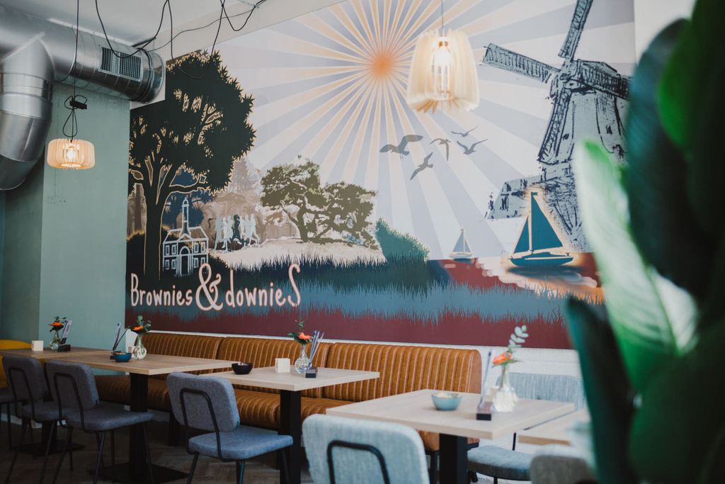 In een prachtig monumentaal pand in de Donkerstraat is Brownies&downieS te vinden. Brownies&downieS is een unieke plek om koffie te drinken, te lunchen of te genieten van huisgemaakt gebak.