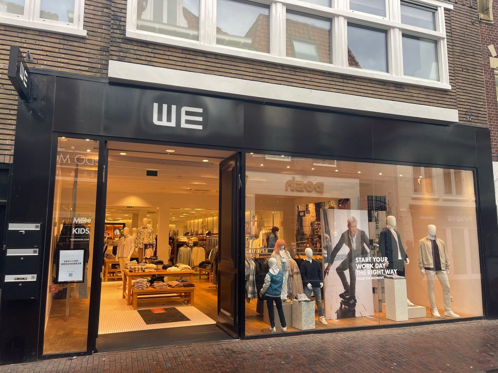 We Fashion is een herenkledingwinkel met een grote eettafel voor een thuisgevoel en een loungesfeer in plaats van een kassasfeer. Je waant je als man in een grote inloopkast.