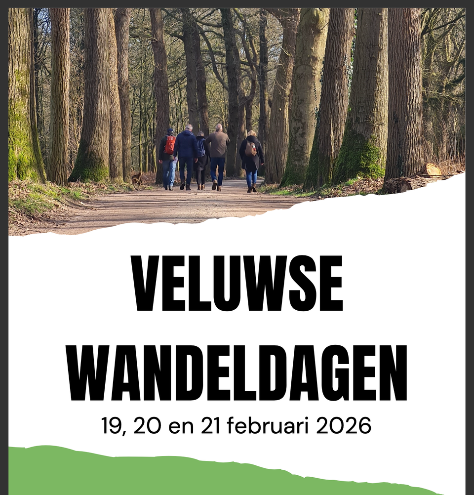 Doe op 19, 20 & 21 februari 2026 mee aan de VeluwseWandeldagen! Starten kan bij de VVV's in Elburg, Elspeet, Ermelo, Harderwijk, Nunspeet en Putten.
